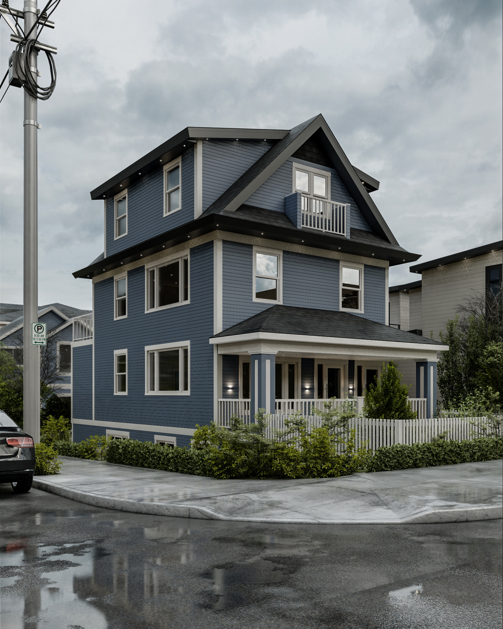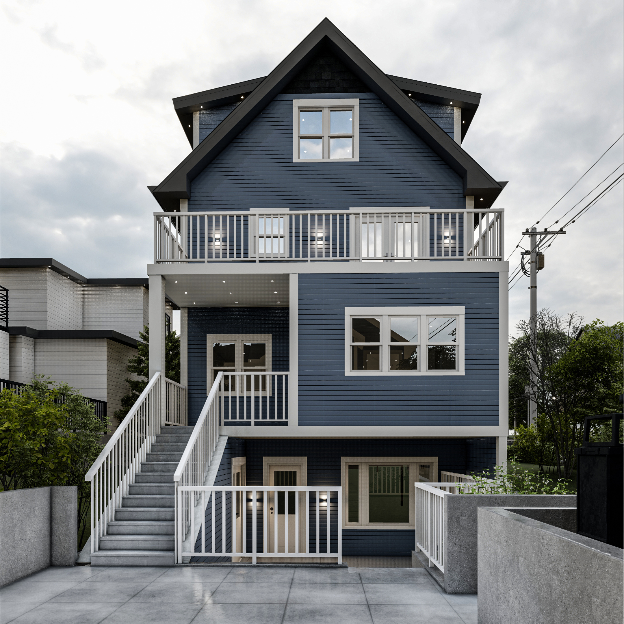 This project is a restoration and renovation of a 90 year-old house in Vancouver, which we redesigned from a single-family home into a multi-family home with 3 separate units. We retained the existing character of the home—the exterior shows minimal changes to the original house, other than lifting it by a few feet to add a garden suite below and replacing the old siding and windows to restore the former beauty of the house.