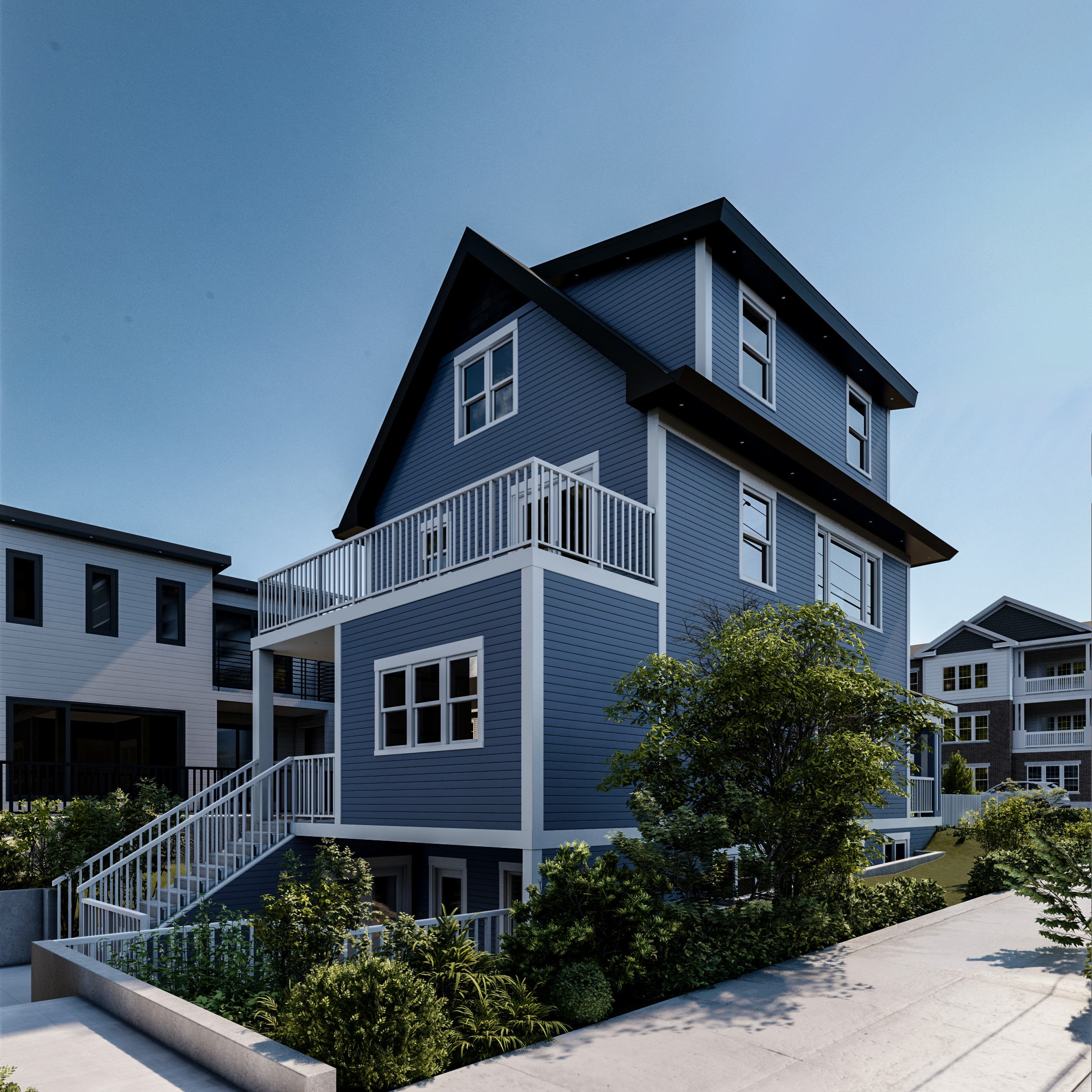 The challenge of this project was navigating building code requirements—adding a garden suite on a sloping site made this building 4 storeys tall at the back. This excluded it from the ‘Part 9’ section of the building code typical for houses, meaning it had to meet the more stringent requirements of ‘Part 3’ of the code. RHA was able to navigate the limitations and opportunities within these constraints and create a design that met the legal requirements and the needs of the client. The house is currently under construction, bringing beauty and function back to the site.