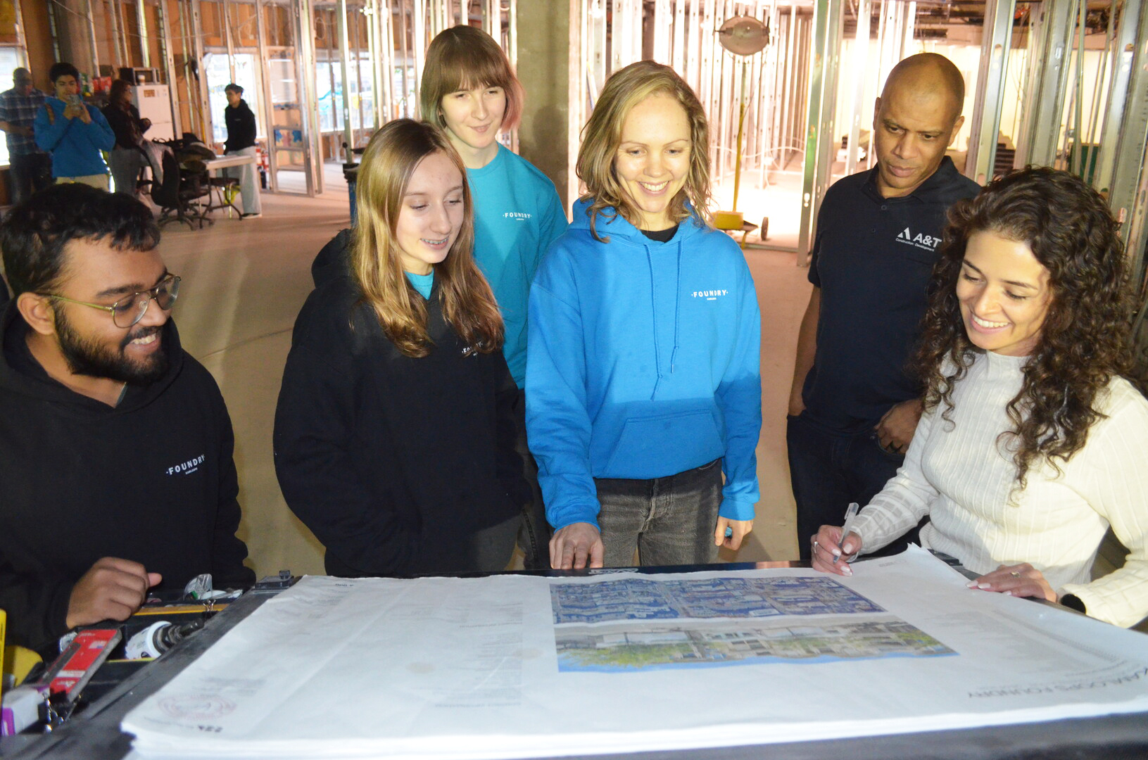 Progress meeting on site with the Foundry youth advisory committee
