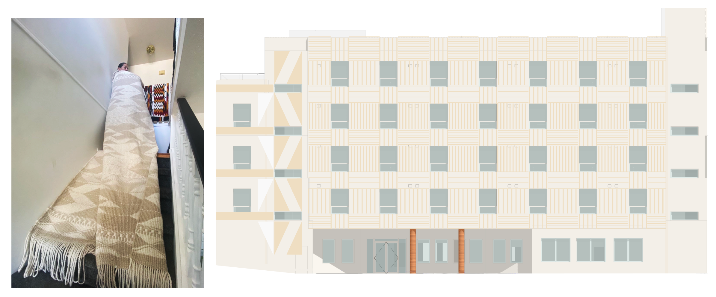 Facade design study based on Debra Sparrow’s woven blanket